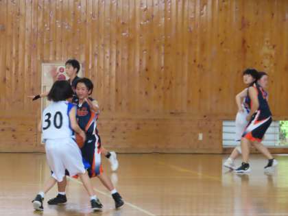 バスケット女子は残念ながら初戦で敗退しましたが、元気よくコートを走り回っていました。