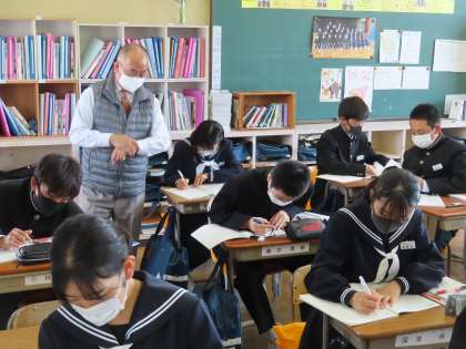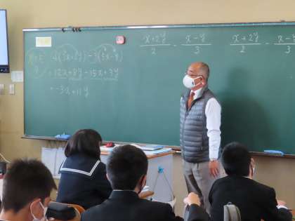 数学の授業を時田先生が行っています。基礎門の問題にトライしていました。多項式の問題に取り組んでいます。