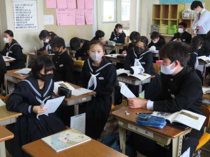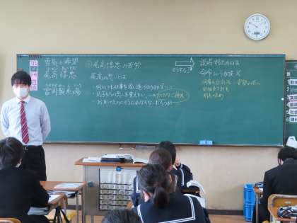 2Cの道徳は伊藤先生です。勇気と希望項目の中の「尾高惇忠が目指した富岡製糸場」についての授業です。大切な「御神木」を切ることになった。お願いをする際の、気持ちについて、命令では?姿勢を低く何度も出向いて話す?どんな姿勢が心を動かすのか・・・を考えていました。