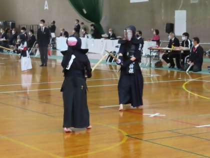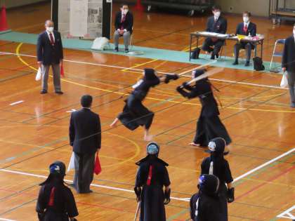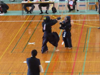 剣道は試合中「面」をつけているため誰か分かりません。垂れに学校名と名前が書いていりますが、なかなか見えなくて写真が撮れませんでした。一番は動きが機敏でシャッターが間に合いません。しかし門池中生は頑張っていました。