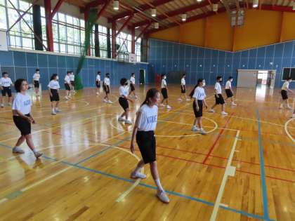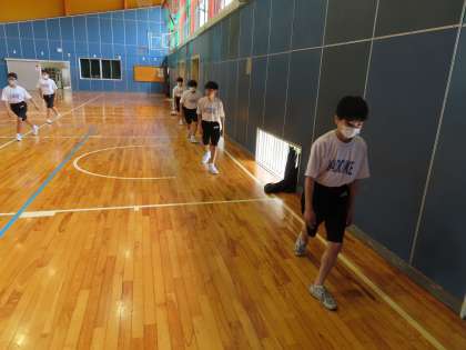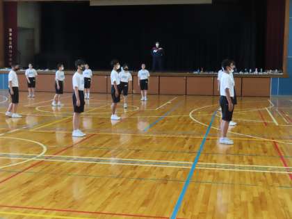 くり返し、くり返し動きの確認を行いました。きびきび動くためには、声を出す、動き・止めるのメリハリをつける、動きを素早くする。これを意識して動きましょう。
