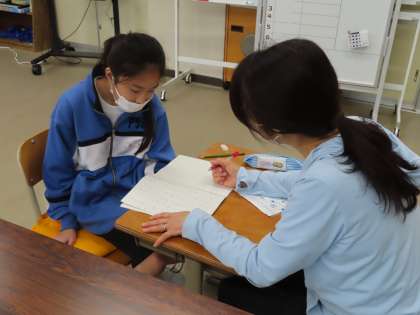I1−1では坂上先生が国語の勉強をしていました。私が教室に入ったおかげで、集中力がなくなってしまいました。すいませんでした。今度は静かに入ります。