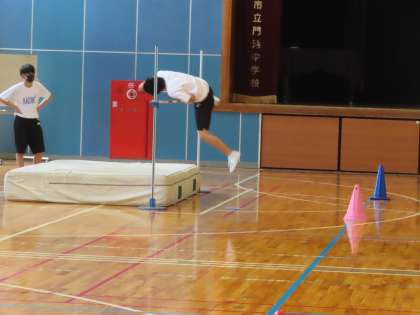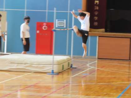 走り高跳びのテストをしています。高さを自己申告し挑戦していました。