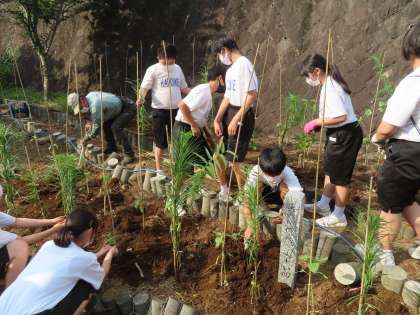 加藤造園のい加藤さんと、門池の森と挨拶通りの花の苗植えを行いました。