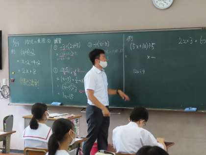 数学では一次式の計算で一次式の乗除の練習をやっていました。