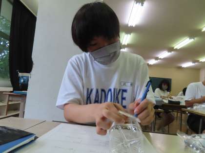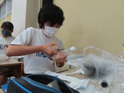 はさみやカッターで切り込みを入れて、種をまく場所をつくっています。