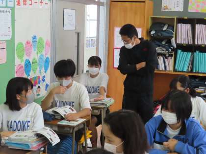 3Bは社会です。SDGSの事を話しています。門池中学校では生徒会でSDGSの取り組みを行うことになっています。それに絡めて話をしています。コロナ感染症についても意見を聞いています。オリンピックはやるべき?それはなぜかなーと意見を求めていました・