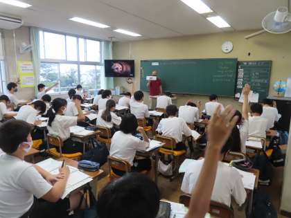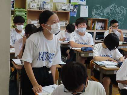 英語の授業です。「KOTAが書いたeーmailの内容を正しく読み取ることができる」この課題に挑戦しています。はじめにいくつかのフラッシュカードの英単語の読みを答えていました。