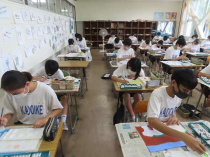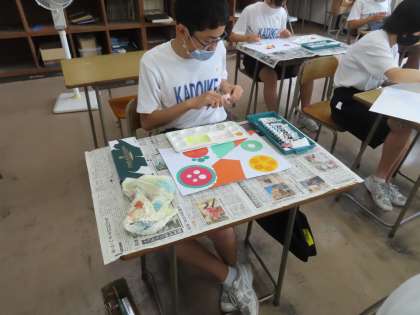 果物を使ったデザイン画も終盤を迎えています。きれいな色彩の絵が増えてきました。