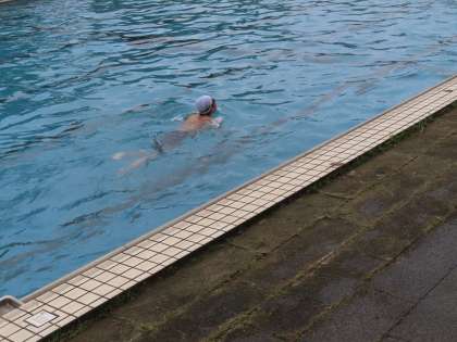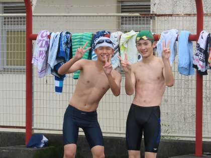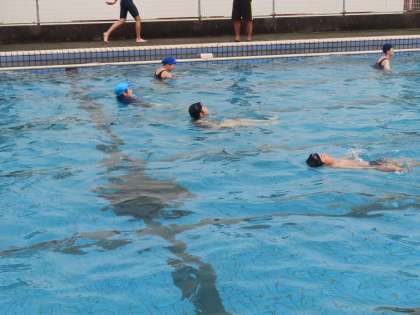 3Dは水泳を行っています。3Dは平泳ぎの練習でした。最後は自由泳法で2本泳ぎます。写真の生徒は「いぬかき」です。