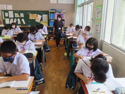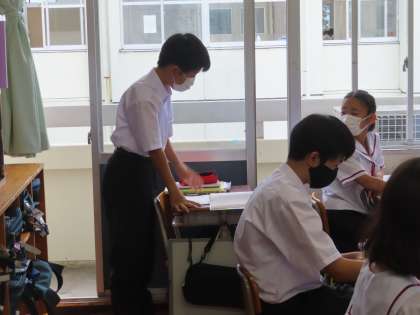 石川舞華先生の国語です。「玄関扉」という説明文です。玄関扉には内開きと外開きがある。日本はほとんどが外開きです。お客様をお迎えするには内開きがよいと説明されています。この本文の「問い」は何だと思いますか?