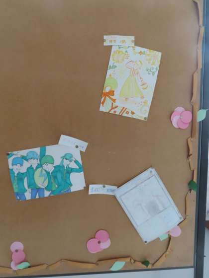 最後は掲示板に飾ってあった作品です。まだ途中らしく、作品が少なかったです。