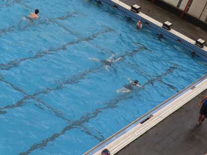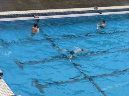 少し時間をおいて見に行くと、25mを泳いでいました。足の裏で水を蹴れているでしょうか。