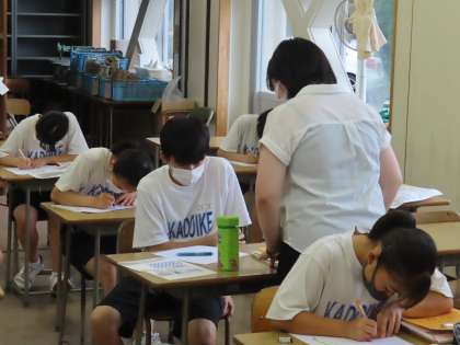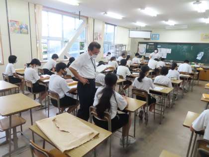 今日は勝俣先生の授業を「研修」としてお客さんが見学に来られました。緊張することなく授業が進んでいきます。