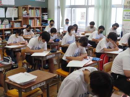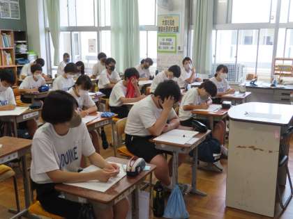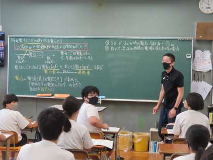 浅井先生の授業です。今日の課題は「電子レンジの使い方を覚えよう」です。問題が「1500wで40秒温めるものは、900wで何秒にする?」です。難しい計算を行うと答えが出ます。これは日常で使えます。