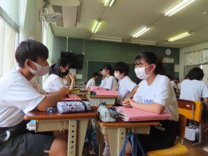 この「コミュ活」の時間が楽しいです。それぞれの思っている「最近の気になるニュース」です。オリンピック関連の生徒が結構いました。