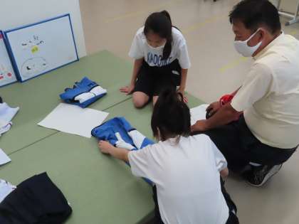 衣類のたたみ方の実習がありました。ジャージやズボンをきれいにたためるでしょうか?