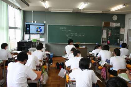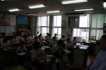 ここでの紹介は  1年生は音楽・理科・国語・数学の授業 2年生は英語・理科・美術の授業 3年生は英語・数学・社会の授業、I組は作業の授業でした。