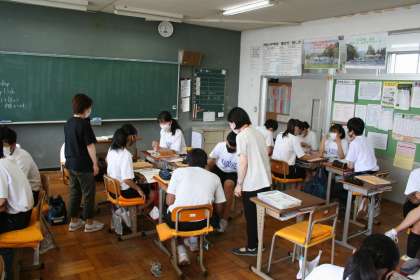 ここでの紹介は 1年生は音楽・理科・国語・数学の授業 2年生は英語・理科・美術の授業 3年生は英語・数学・社会の授業、I組は作業の授業でした。