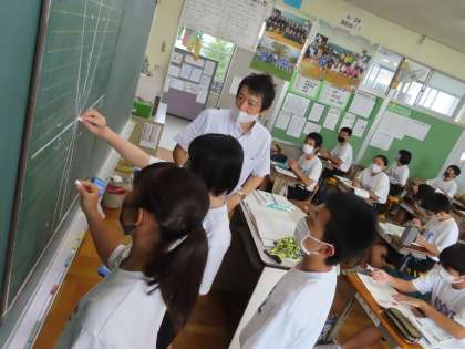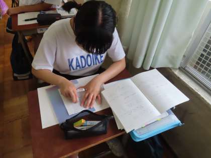 関数の授業です。1,2年生の関数の振返りを見ながら考えている生徒もいます。几帳面にノートに記入されています。この努力が力になるのです!