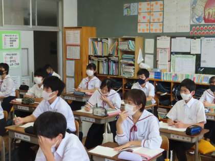 3Dは国語で「俳句」の授業です。無季自由律俳句についての復習です。「分け入っても分け入っても青い山」この句についての学習です。