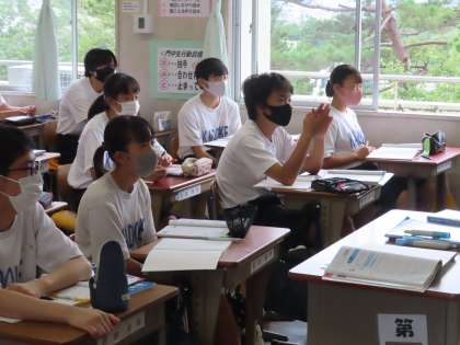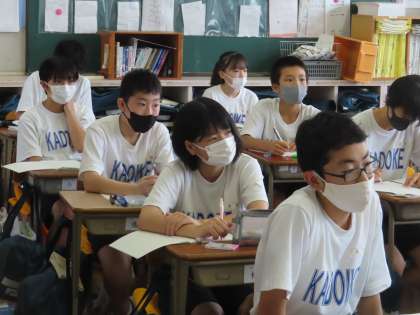 担当の先生が出張に出かけたため急遽「数学」になりました。一次関数に入っています。1年生でやった比例、反比例は一次関数の仲間!教科書の「線香」の燃えてる時間と長さに関する問題です。