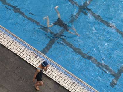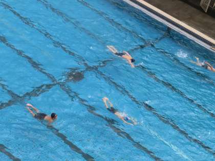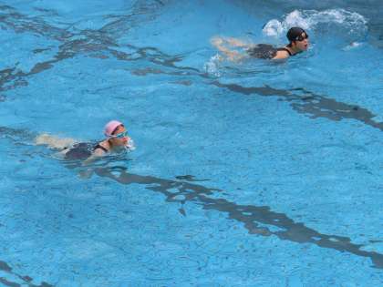 水泳ではクロールと平泳ぎを練習しています。1Cの貸し切り状態です。