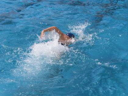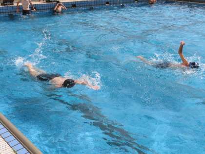 水泳の授業です。泳法チェックをしていました。クロール、平泳ぎです。
