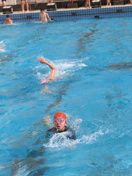 水の中で顔が分かりません。一生懸命に泳いでいることは分かります。しかし誰かが分かりません。残念です。