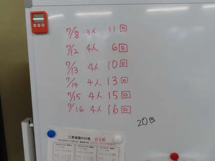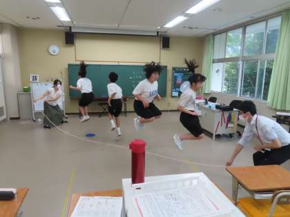 遠藤先生と坂上先生とがまわし手となり、長縄飛びの練習をしていました。「ドン」「ドン」とリズムのよい音が聞こえてきます。日に日に最高記録を更新しています。「目指せ20回」頑張ろう。