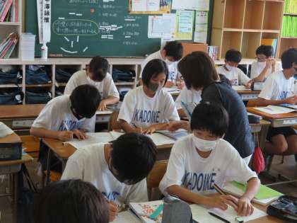 2Bの数学は「一次関数のグラフがかけるようになる」が目標となっていました。隣同士教え合いながら進めています。