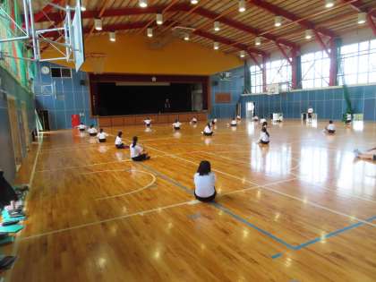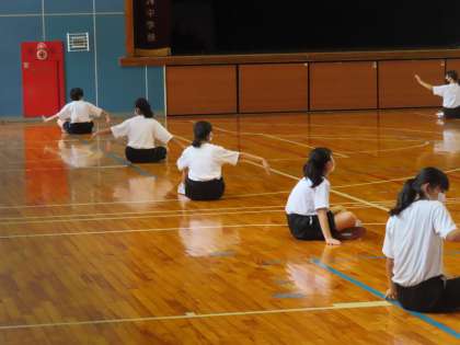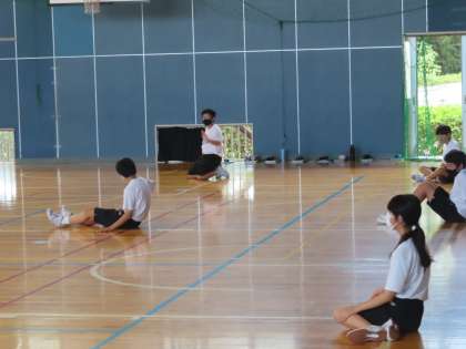 2年生は創作ダンスです。体の動かし方を体験中です。体はなまっています。