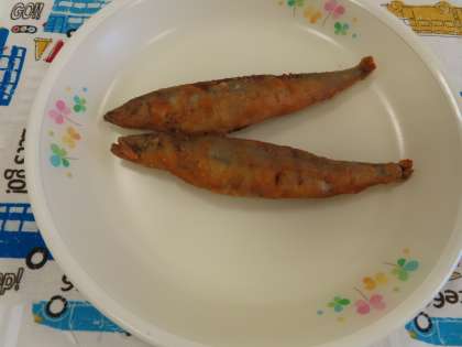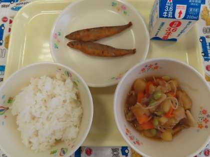 かりっと揚がった卵がたくさん入ったシシャモでした。肉じゃがはジャガイモも柔らかくごはんにとっても合いました。ごちそうさまでした。