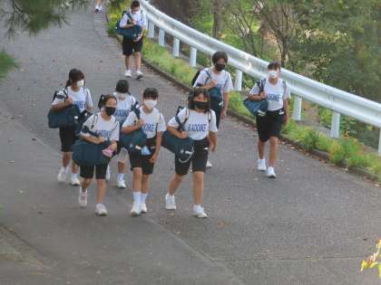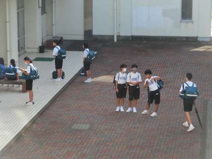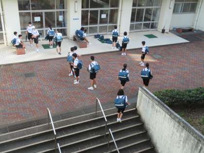 7:40に生徒玄関を開けます。35分には各学年数人の生徒が列を作っていました。