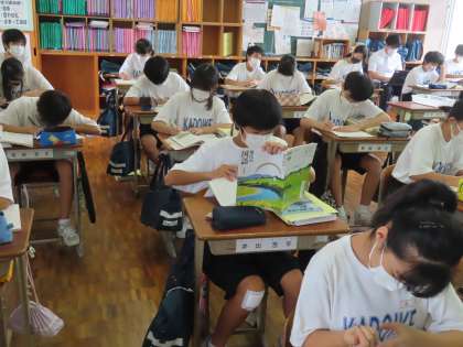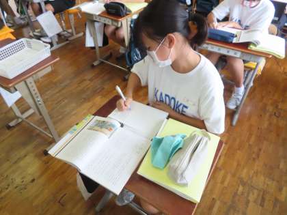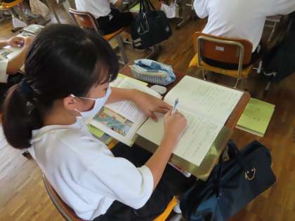 1Aは「竹取物語」を学習していました。翁が老いた描写から分かることなど場面をより深く考えて授業が進んでいきます。