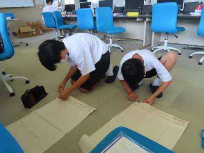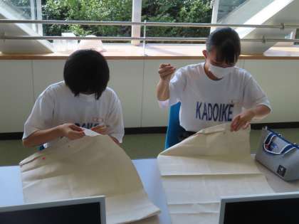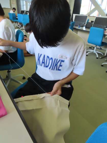だんだん調子が出てきたようです。まっすぐ縫えなくてやり直している生徒もいます。頑張って下さい。