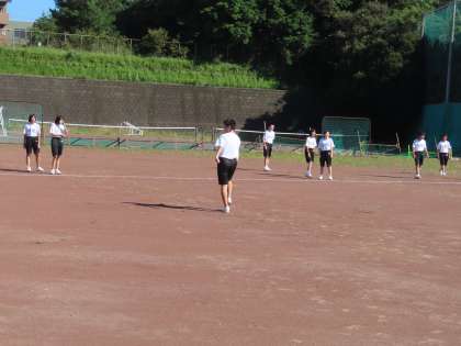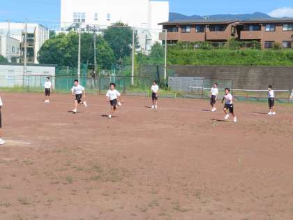 2Bは体育の授業です。グラウンドで体力作りです。軽いランニングと短めのダッシュです。まだ、運動不足の生徒が多いようです。