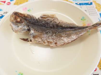 沼津の特産品「鯵の干物」です。初めての人はびっくりしますが、丸ごと揚げてあります。骨まで丸ごとバリバリ食べることができます。ごちそうさまでした。