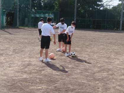 今日はサッカーのボールコントロールです。ボールと友達になるのは早いです。