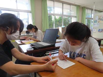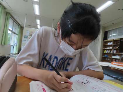 それぞれの苦手な部分の勉強をしています。国語の問題に取り組んでいました。水輝さんはスムーズに読めるように練習中です。