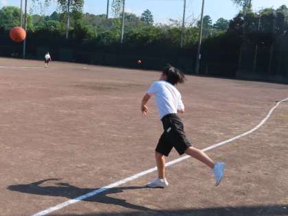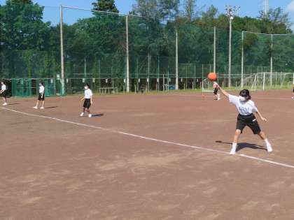 2Aはハンドボール投げを行っていました。ここまでに走ったり、筋トレをしたのですが、結構ばてています。前回の体育で筋肉痛になった生徒もいます。