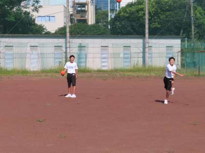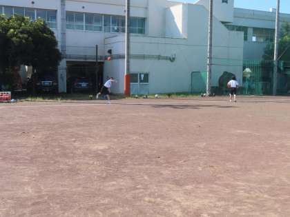 利き腕で投げたり、反対の腕で投げたりバランスよく体を動かしています。少しずつ体を動かしておきましょう。