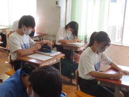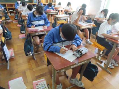 授業はじめの漢字小テストを行っています。「同訓異字」の漢字です。読み方は同じでも漢字(内容)が違う問題です。