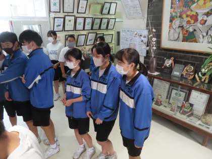 市内の小中学校を順番で回覧しています。児童生徒に本物のトーチを見て感じてもらいたいと、「岩崎恭子さん」が持って走ったトーチを沼津市に貸していただきました。10/6(水)一日だけですが門池中学校に来ました。