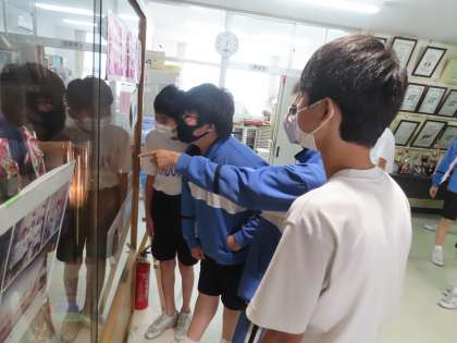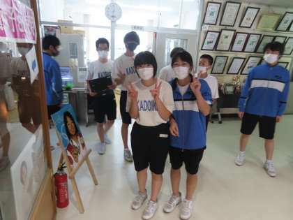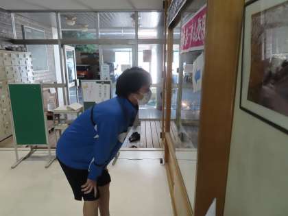 休み時間になると生徒が集まってきて、聖火ランナーのトーチを見に来ていました。