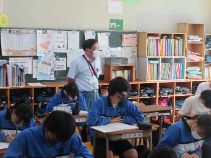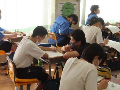 3Cは理科です。化学式についてのわからないことは全て解決しよう。相談しながら進めよう。と難しい化学式・化学変化について学習しています。頑張ってね!