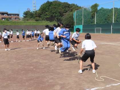 今日の昼休みから体育の部の練習が始まります。半分の学級は教室で帰りの会をやっています。