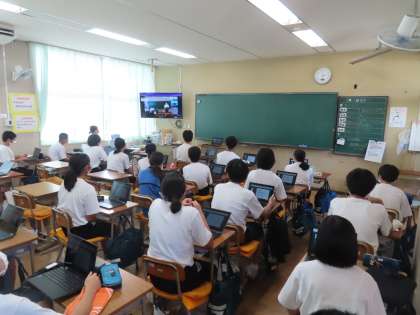 教室では自分のChromebookで議案書を開き、専門委員長の話を聞きました。生徒会室にだけエアコンがなく暑さとの戦いでしたが、生徒会と学年委員長はとても立派でした。