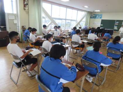 2Cは音楽です。音楽鑑賞をしていました。かかっている曲のイメージを書き出し、曲名を書きます。聞いた事がある曲ですが名前が出てきません。