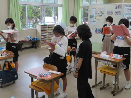 今日はお客さんが来ていました。英語の歌から授業が始まります。